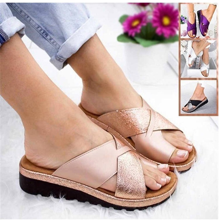 【外反母趾対策サンダル】柔らかい、ラウンドトゥ、牛革、 ウェッジソール、履き心地が快適